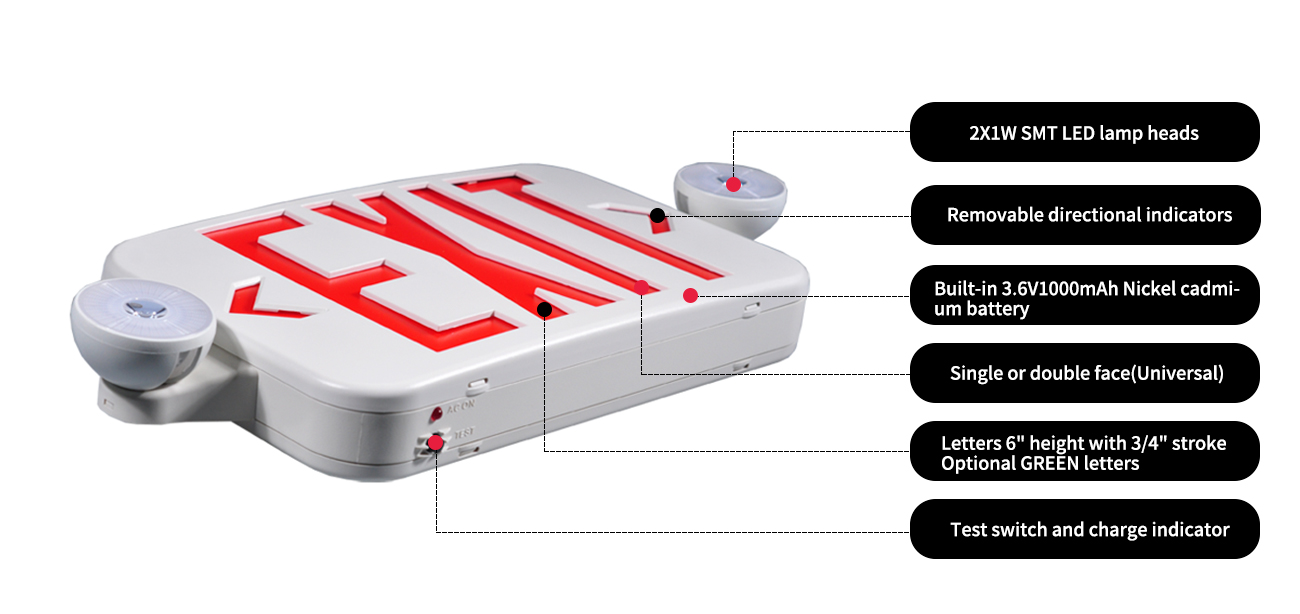 *Valaistus - Hätävalaisimet käyttävät pitkäaikaisia, energiatehokkaita erittäin kirkkaan valkoisia LED -levyjä. Päät on valmistettu korkean suorituskyvyn kromattujen heijastimien ja polykarbonaattilinssien kanssa optimaalisen valon jakauman saavuttamiseksi. LED-poistumismerkkisarjan valaistus saavutetaan käyttämällä pitkäaikaisia, tehokkaita erittäin kirkkaanpunaisia LED-levyjä. Väri-sovitettu hajotin eliminoi hots-pisteet ja striaatiot tarjoamalla optimaalisen valonlähtöä.