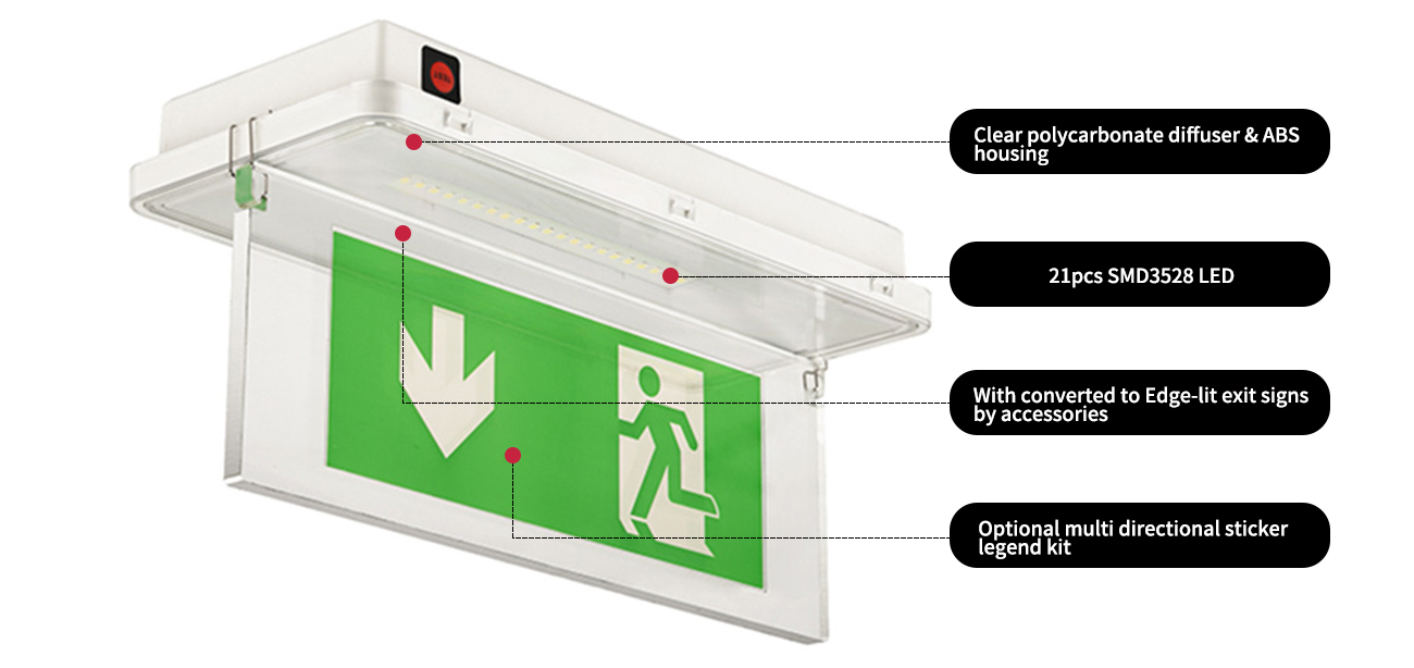 *Lisävarusteiden reuna-valaistuksi poistumismerkeiksi muunnettuna